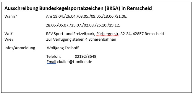 - BKSA Termine Remscheid